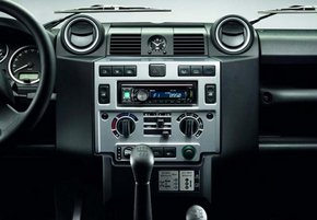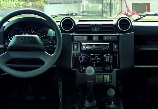 新款路虎卫士内饰中控 配置方面:新款路虎卫士为用户提供更多定制组合,其中包括首次在本车系推出的局部真皮座椅和真皮方向盘。选装套件的构成如下:舒适套件——空调、配备辅助输入接口的CD播放器与便利套件;内饰套件——地毯、杂物箱、真皮座椅、真皮方向盘。真皮套件——首次针对所有车型提供真皮座椅和真皮方向盘配置,储物网兜。