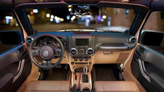 新款牧马人那简约的中控台、大尺寸操作按钮、清晰易读的仪表盘、防晒防擦的面料、可冲刷式地板等等,在很大程度上提高了复杂路况驾驶时的安全性、便利性,以及耐久性;而集成定速巡航功能的真皮多功能方向盘,多处点睛的精工镀铬装饰,座椅周边区域"软包裹"材质等,也有效提升了驾乘舒适感、内装的精细度及品质感受。